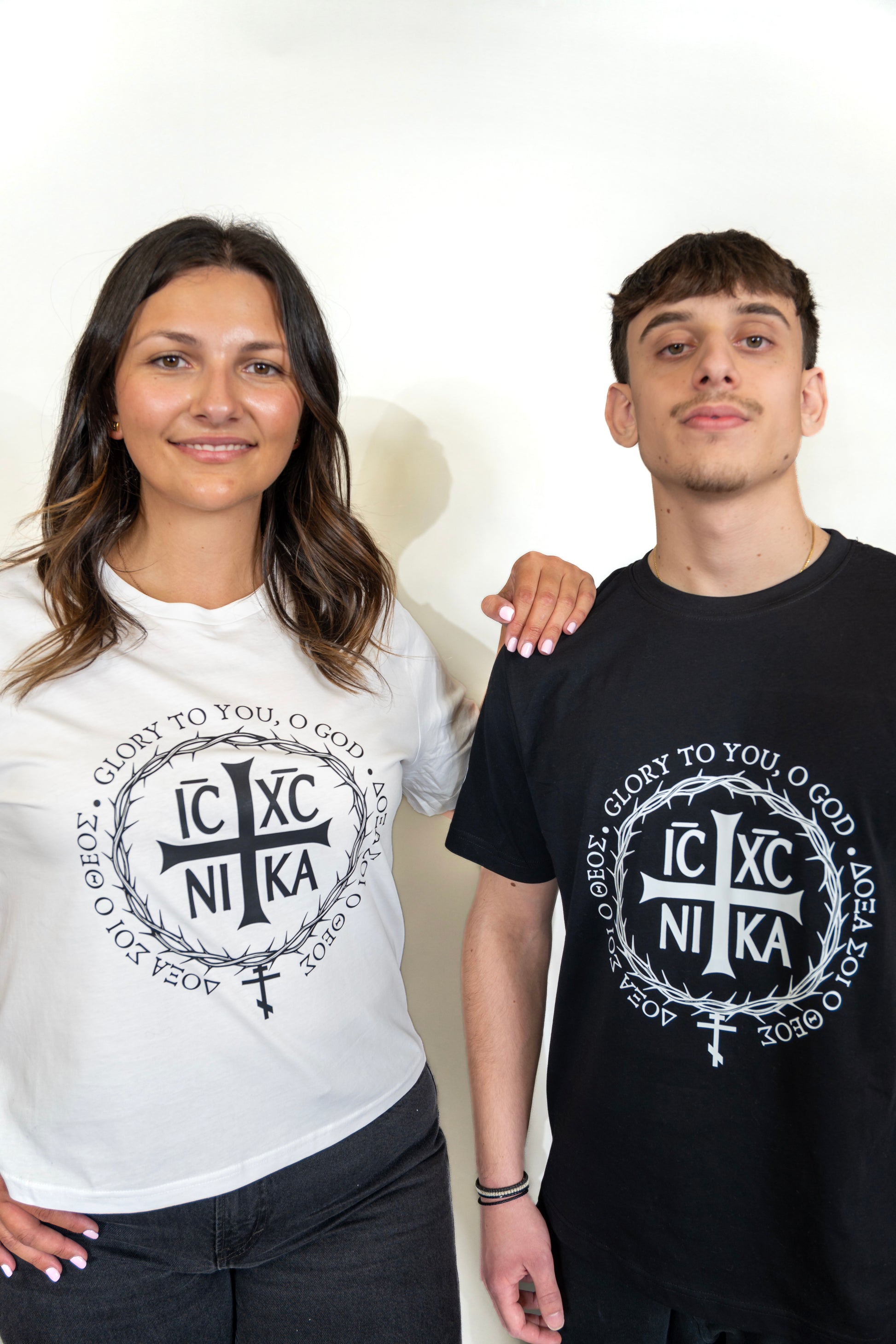 This design contains the phrase ‘Δόξα Σοι ὁ Θεός’ (‘Glory to You, O God’), written in both Greek and English around the crown of thorns.
