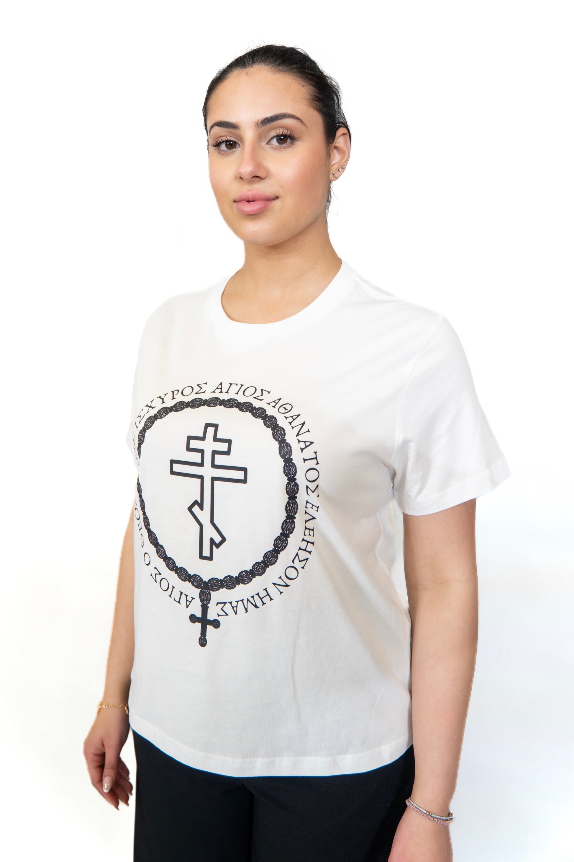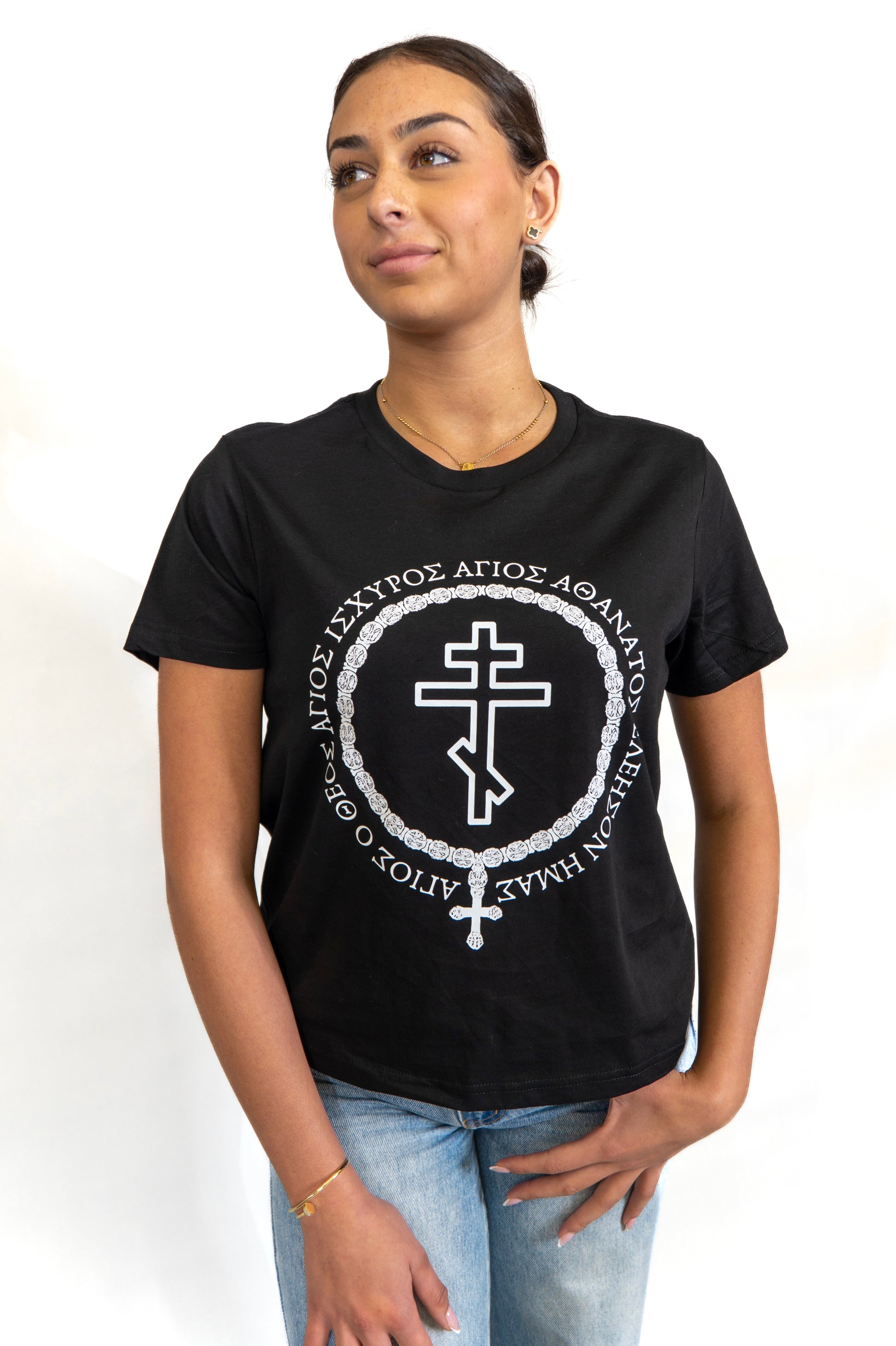 This design contains the Trisagion Prayer in Greek, which translates to, ‘Holy God, Holy Mighty, Holy Immortal, have mercy on us’, written around the Orthodox komboskini rope.